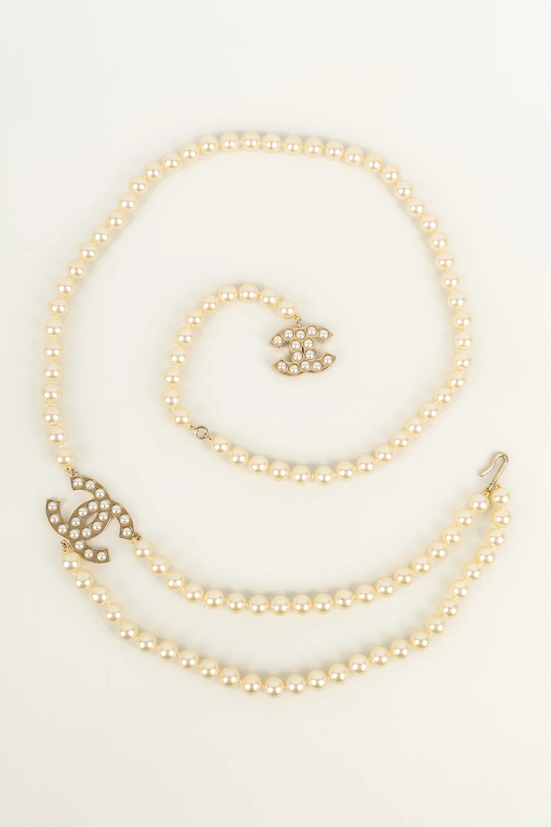 CHANEL - (Made in France) Ceinture de perles nacrées et logos cc pavés de petits cabochons. Collection 2004.